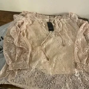 Sheilay Lace V-Neck Long Sleeves Casual Blouse. Can be worn off shoulder or half off shoulder.
