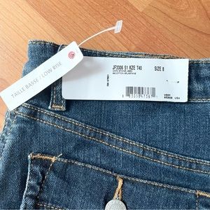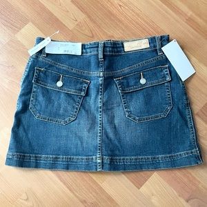 NWT Lacoste Low Rise Denim Skirt. Dark Stone wash, zipper/flap button closure with loops, side and back button flap pockets. Measures 15” across waist and 14” long. Cute skirt!