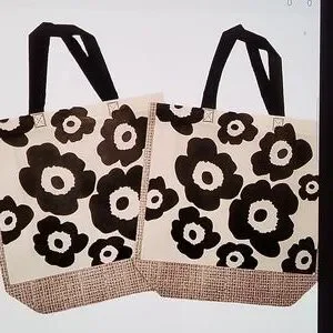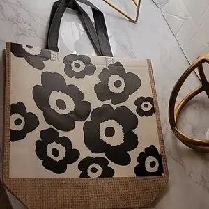 COPY - FLOWER POWER REUSABLE TOTES SIZE LARGE (12 X 4 X 10) BLACK/WHITE