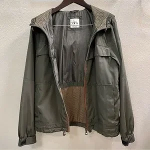 Men’s Zara long sleeve windbreaker medium olive jacket outerwear - medium