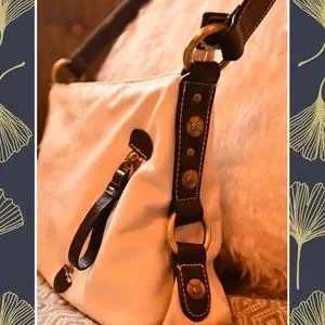 cream/off white with dark brown straps and gold tone hardware