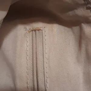 Excellentv used condition: no scuffs or marks on the outside, there are a couple very tiny stains on lining at zipper pocket see photo