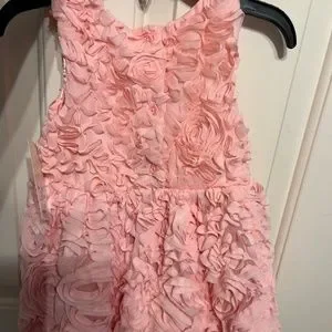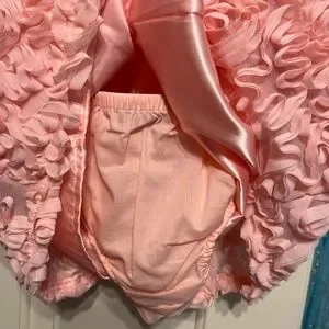 Gorgeous Light pink/peach rosette dress. Size 18 month. Comes with liner and diaper cover. Button back.