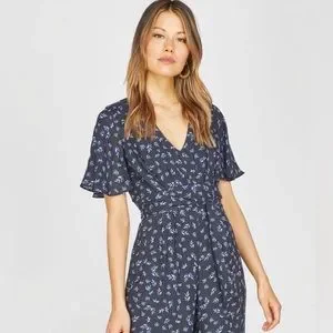 LIKE NEW: Greylin Printed Short Sleeve Jumpsuit with Tie Waist - Size XS