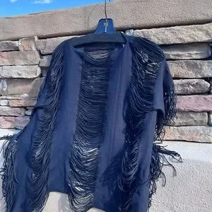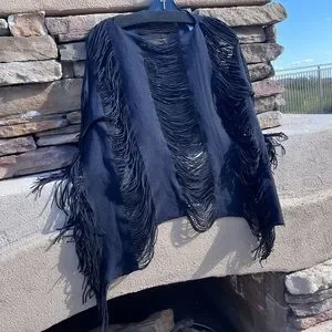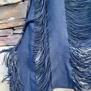 Fringe detail, 100% Viscose, made in USA. Measures 21” in length and 26” across.