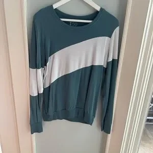 The feminine drape of luxe french terry is finished with ribbed cuffs and hem.