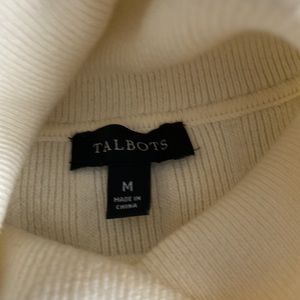 Cream turtleneck sweater.
