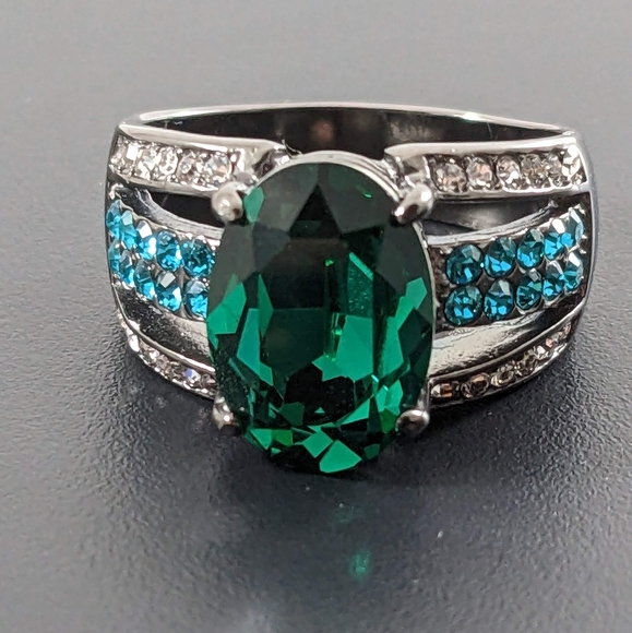 Try a different style with this Stainless Steel Ion Plated light black Top Grade crystal ring! Looks like the colors of a stormy sea 🟢🔵⚫⚪ NWOT Cocktail costume ring. I only have a size 10 and a size 8 available