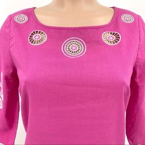 Lilly Pulitzer Linen Blend Pink Embroidered Tunic Top