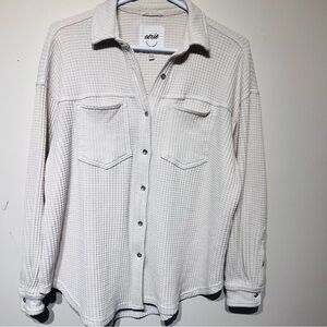 Fun textured material in a lovely pale pink with puffy sleeves and a round neck.