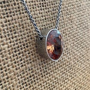 Gorgeous retired Silpada oxidized sterling silver 925 oval champagne CZ necklace.