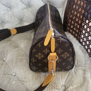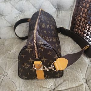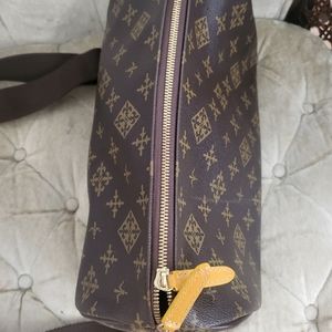 In a very good condition.Laminated canvas Body and has an inside open pocket with adjustible sling strap.