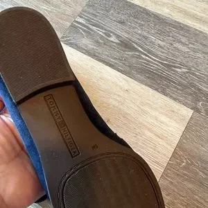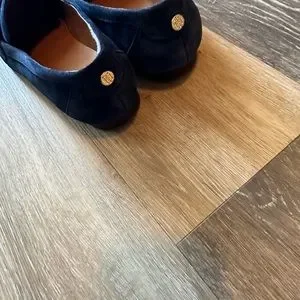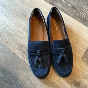 Like New! Tommy Hilfiger navy suede penny loafer flat, worn once inside banquet hall. Beautiful comfy flat.