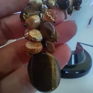 Necklace and Bracelet Set, Tiger's Eye, champagne pearl and crystal elements