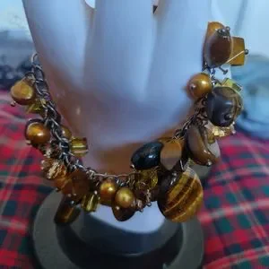 Necklace and Bracelet Set, Tiger's Eye, champagne pearl and crystal elements.