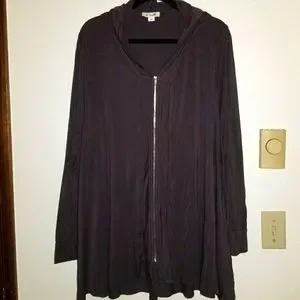 GUC dark gray zip front top with 2 deep side seam pockets.