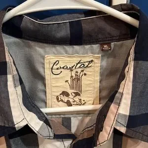 Coastal brand brown, black, cream colored snap up Men’s shirt. Size XL. Great condition but unforgivably is missing a snap cover on left front pocket. All other snaps/buttons in tact.
