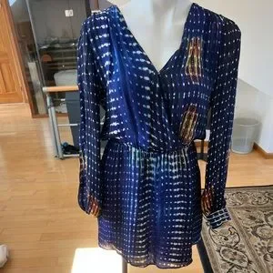 Beautiful summer comply blue summer dress. Open back Foley dress