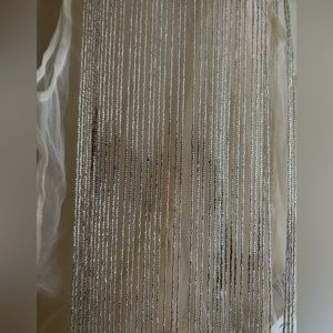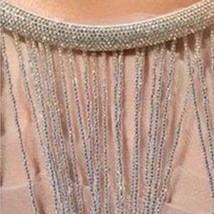 Callie Drenched: Rhinestone collar sheer mesh sleeveless top with beaded waterfall blouse features a sheer mesh fabrication, a sleeveless silhouette and a crew neckline with necklace inspired rhinestone collar detailing and cascading beaded fringe accents. Complete with a button back design.