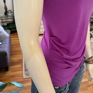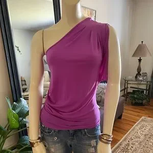 Show your sexy yet sophisticated side with this Express fuchsia one shoulder top featuring a slight pleated shoulder accent and a slight gathering on one side.