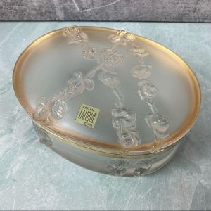 Lalique Coppelia Trinket Dresser Box Oval hinged with gold tone hardware France