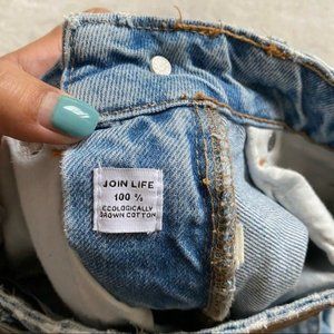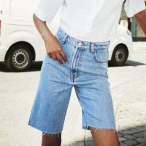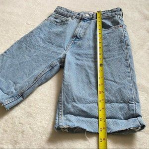 Zara Women Join Life Premium 90s Bermuda High Waist Raw Hem Denim/Jeans Shorts Size US 0