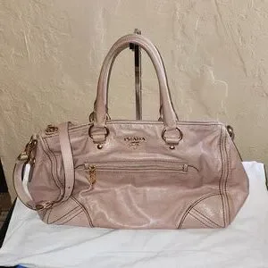 Authentic Pre-loved Prada Two Way Bag in Leather material. Very good condition. Some minimal signs of use. 1 zipped main compartment and 1 open pocket.