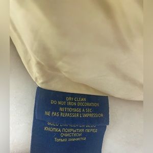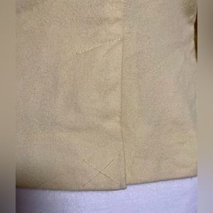 Pale yellow blazer with beige/tan lining and a hidden pocket inside on the left.