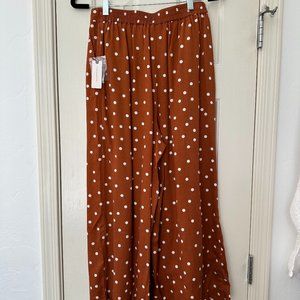 Anthropologie Polka Dot Wide Leg Crop Pant in Rust. Size S.