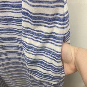 T by talbots blue white striped sleeveless maxi dress. Nautical vibes, with pockets and a knot detail on the back. Gently used with no flaws, size XL. See photo for approx. measurements in inches.