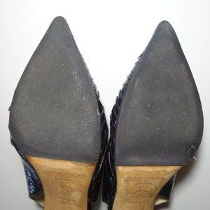 Jimmy Choo Black Stiletto Heels With Pointy Toe & Leather Ankle Strap, Sz 38