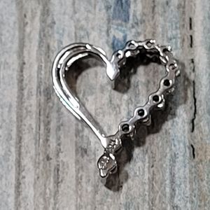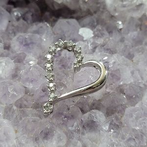 The open heart is covered on one side with tiny round diamonds (0.12tcw).