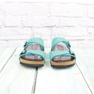Birkenstock Birki's Freeport Blue Perforated Leather 2 Strap Sandals Size L6 M4