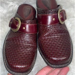 Women's Clarks Artisan Mules Clogs Shoes Size 8 Burgundy Woven Buckle gently used in excellent condition