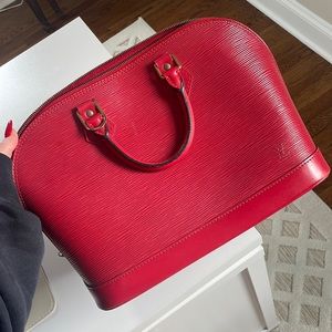 Vintage red Alma bag. Date/serial stamp tag inside as seen in photo. Location (MI) matches “made in France” stamp on leather. No authentication cards (LV does not come with any) but this bag will go through the authentication service Poshmark offers. In good vintage condition. Moderate wear at hardware. No stains or scratches on leather, interior in excellent condition. Comment with questions.