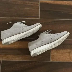 Women’s Cole Haan Suede Grand Wingtip II Lace Up Loafers. Color Vapor Gray. In excellent preloved condition, only worn a few times. Suede is in excellent condition, no stains