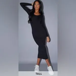 PrettyLittleThing Tall Black Long Sleeve Jersey Maxi Dress - UK8/ US4 - NWT