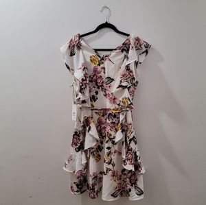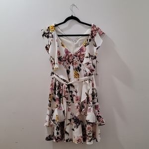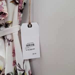 Never Worn and NWT. Perfect dress for summer or spring events. Has Fabric belt and little thread loops to help keep belt in place if needed.