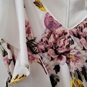 Colors: Light cream with mauve and yellow floral and greenery.