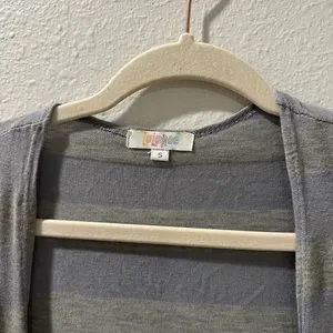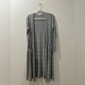 Grey, striped duster from LuLaRoe. Size: small Slightly worn Condition: good