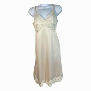 Vintage Vanity Fair 70's Sissy 32 Nylon Full Slip Dress Lingerie Lace Beige 30L