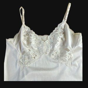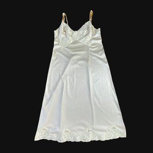 Listing is for a GORGEOUS vintage full slip!! 1970's Vanity Fair Anti-cling, 100% nylon. Slippery soft nylon with lace at bust and hem. Adjustable ribbon straps with metal slides. Wear this little number as a slip, nightgown or dress.