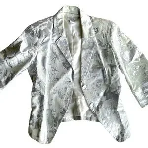 Cache Leather Blazer Grey Pattern 3/4 Sleeve