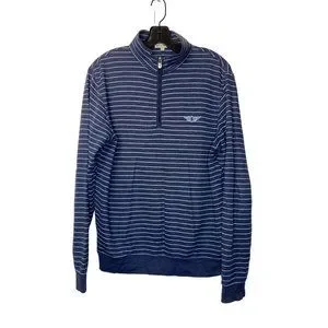 Peter Millar Men's S Blue Stripe Pullover Mock Neck 1/4 Zip Golf Top Sweatshirt
