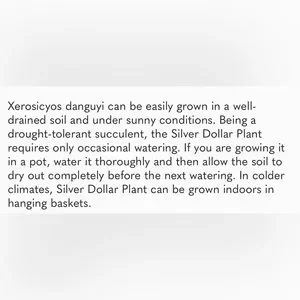 Xerosicyos danguyi can be easily grown in a well-drained soil and under sunny conditions. Being a drought-tolerant succulent, the Silver Dollar Plant requires only occasional watering. If you are growing it in a pot, water it thoroughly and then allow the soil to dry out completely before the next watering. In colder climates, Silver Dollar Plant can be grown indoors in hanging baskets.