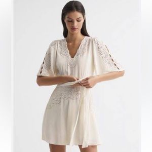 REISS RHEA BRODERIE SLEEVE FLOPPY MINI DRESS LACE 6 NEW WITH TAGS
