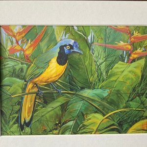8x10" Colombia Cafe Quindio Art Print (w/mat): Green Jay- HOME
