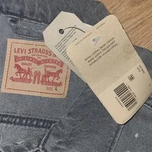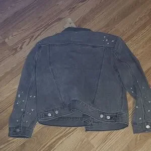 New Levi's lightly distressed paint splatter Gray denim Jean jacket size L