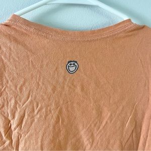 A cute Life is Good coral colored women’s tee with a sunflower graphic on the front that reads “life is good.” Logo on the back also. Please note: there’s a pin sized hole on the front left of the shirt, as can be seen in the close up pic. Not too noticeable, in my opinion, especially when worn. In very good condition, just needs a steaming or ironing. Size medium.