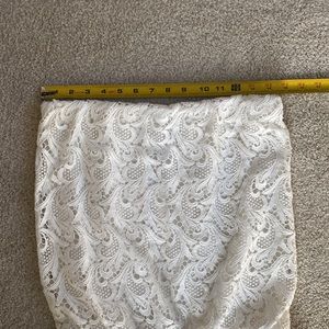 New Alexis white embroidered strapless jumpsuit. Medium. Approximately 29” inseam. Size tag came off with Tags attached as shown. Fully lined. Elastic top and waist